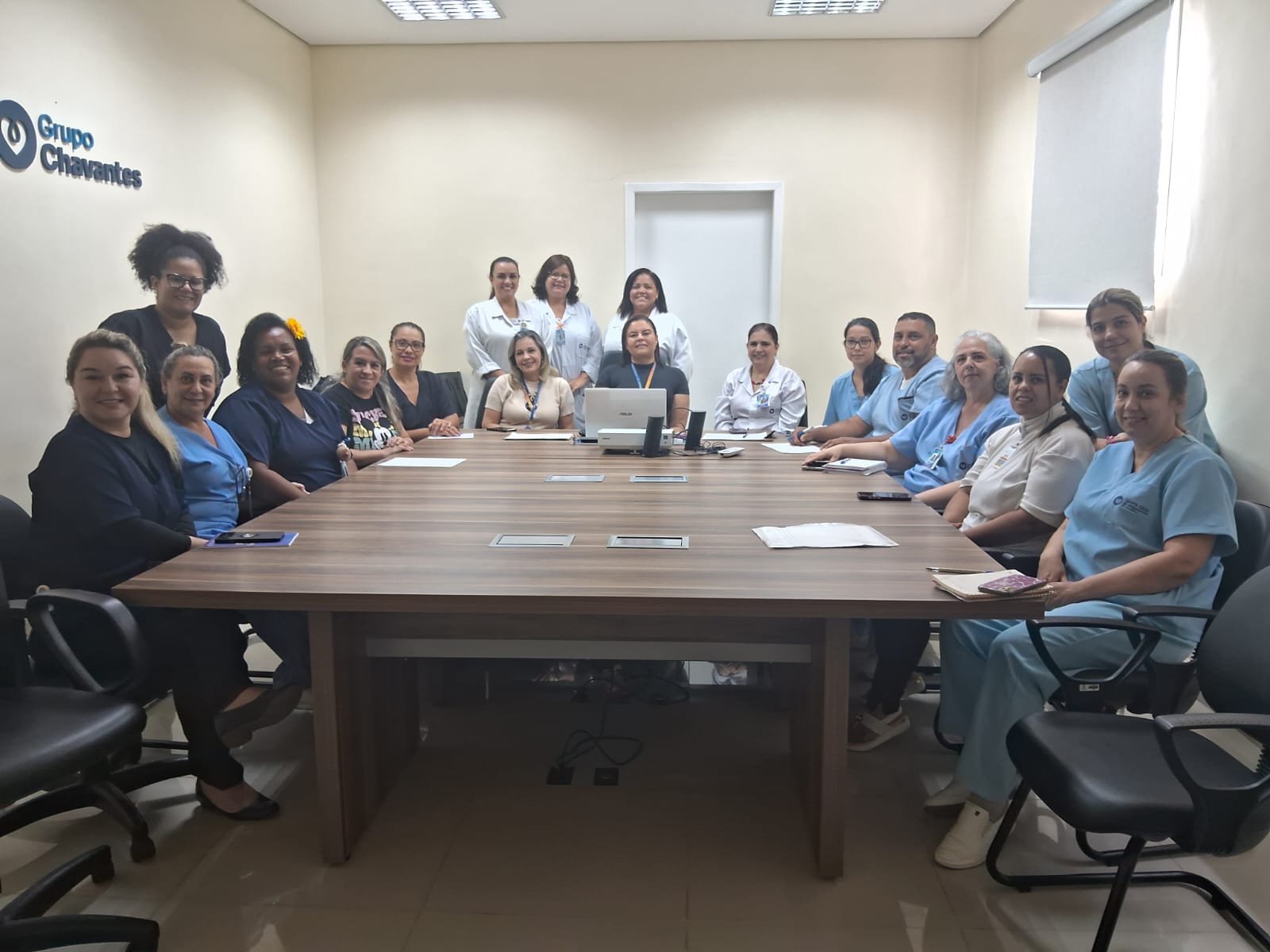 Estiveram presentes também a Diretora Assistencial, a Gerência de Enfermagem, a Enfermeira da Qualidade, além da equipe de Educação Continuada, que apoiaram o ato e celebraram este momento significativo para a instituição.
