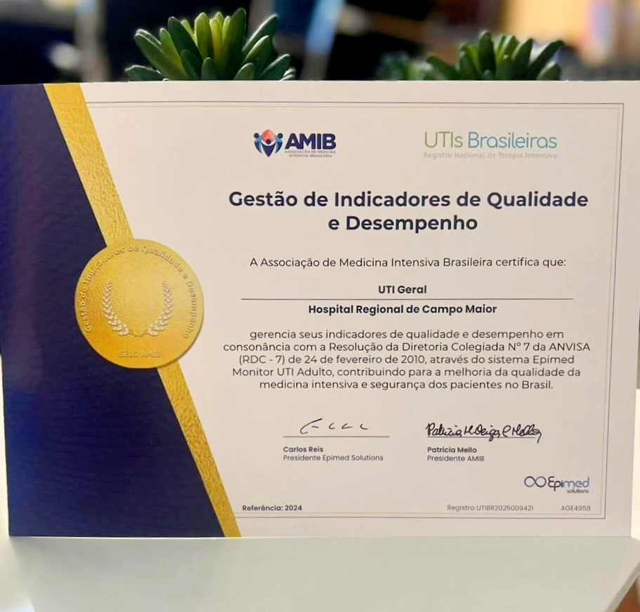 Na última terça-feira (17/6), o Hospital Regional de Campo Maior (HRCM) foi certificado com o Selo de Gestão de Indicadores de Qualidade, da Epimed Solutions Brasil, uma das principais referências nacionais na avaliação de desempenho de Unidades de Terapia Intensiva (UTIs). A certificação atesta o compromisso da instituição com a segurança do paciente, eficiência assistencial e excelência na gestão clínica, atributos essenciais no cuidado a casos graves e de alta complexidade.